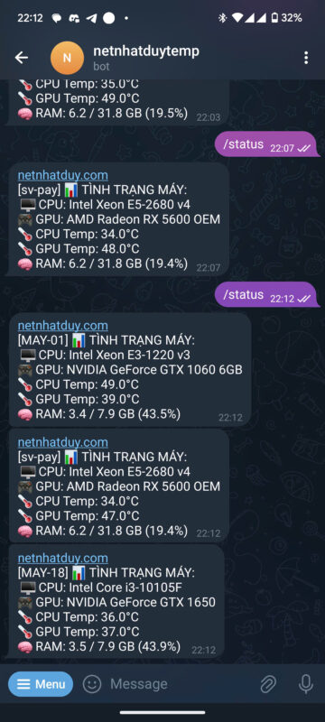 Chào mọi người!Gần đây mình có dùng ChatGPT viết và đóng gói một ứng dụng nhỏ tên là TempMonitor, giúp giám sát nhiệt độ CPU/GPU và gửi cảnh báo trực tiếp về Telegram nếu vượt ngưỡng. Mục đích là để bảo vệ phần cứng và kịp thời xử lý nếu máy quá nóng 🔧💻